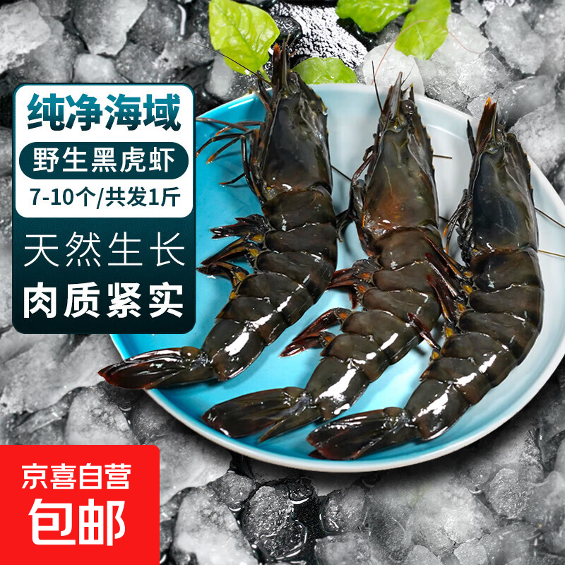 京喜深海白虾盐冻基围虾速冻超大竹节虾黑虎虾无冰滑皮虾新鲜虾类 黑虎虾7-10个 1斤(净重) 1斤