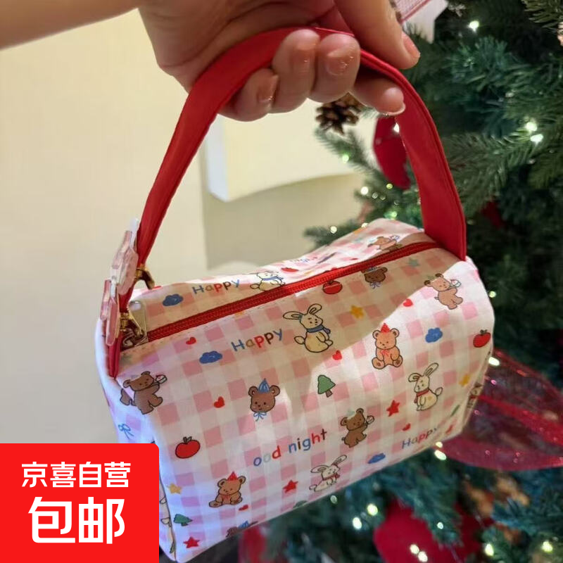 彩色点点高颜值卡通小熊兔子便携化妆洗漱包旅行收纳包立体手提包 活动四红色