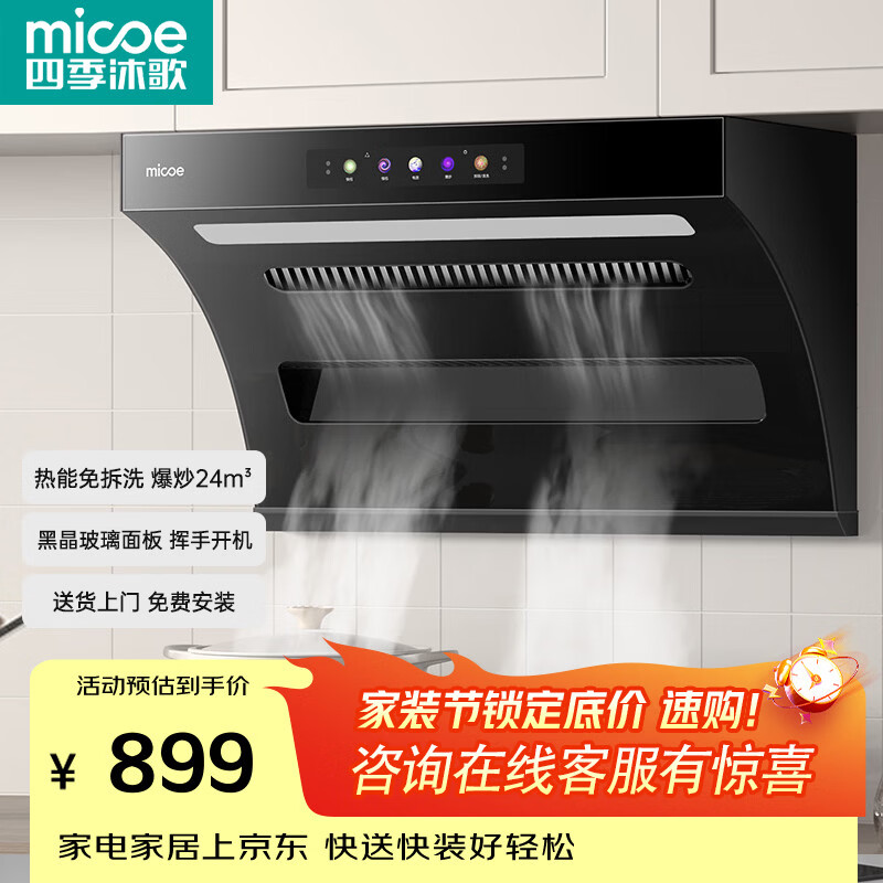 四季沐歌油烟机家用顶侧双吸抽油烟机大吸力厨房抽烟机脱排油烟机免拆自清洗抽烟机一级能效侧顶吸油烟机 [700宽度]D50Q-24爆吸|挥手启动|热清洗