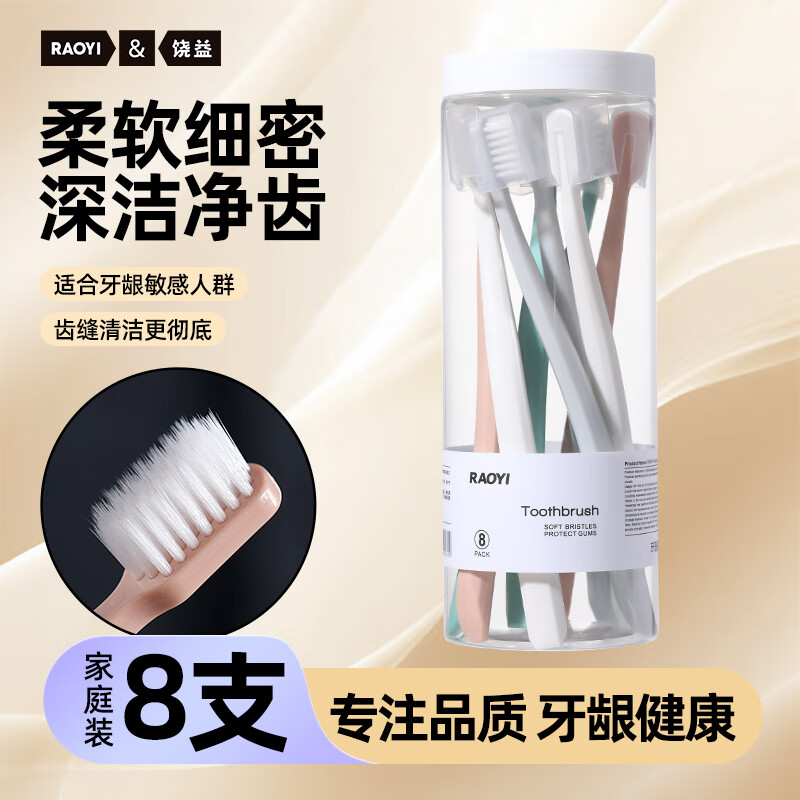 RAOYI成人牙刷软毛呵护牙龈家用待客软毛牙刷 (护龈软毛) 8支