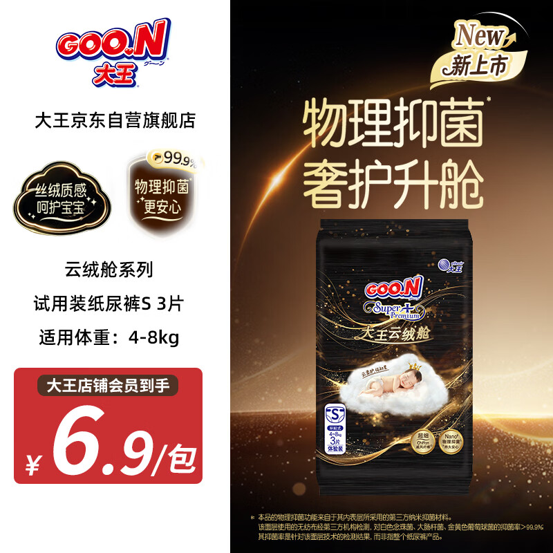 大王(GOO.N)云绒舱系列纸尿裤 S3片(4-8kg)尿不湿 柔软抑菌 试用装