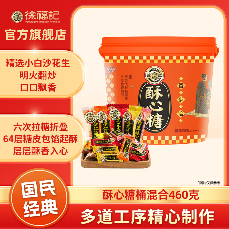 徐福记酥心糖混合袋装结婚庆喜糖果伴手礼年货送礼酥糖儿童休闲零食批发 【桶装】酥心糖桶混合口味460g