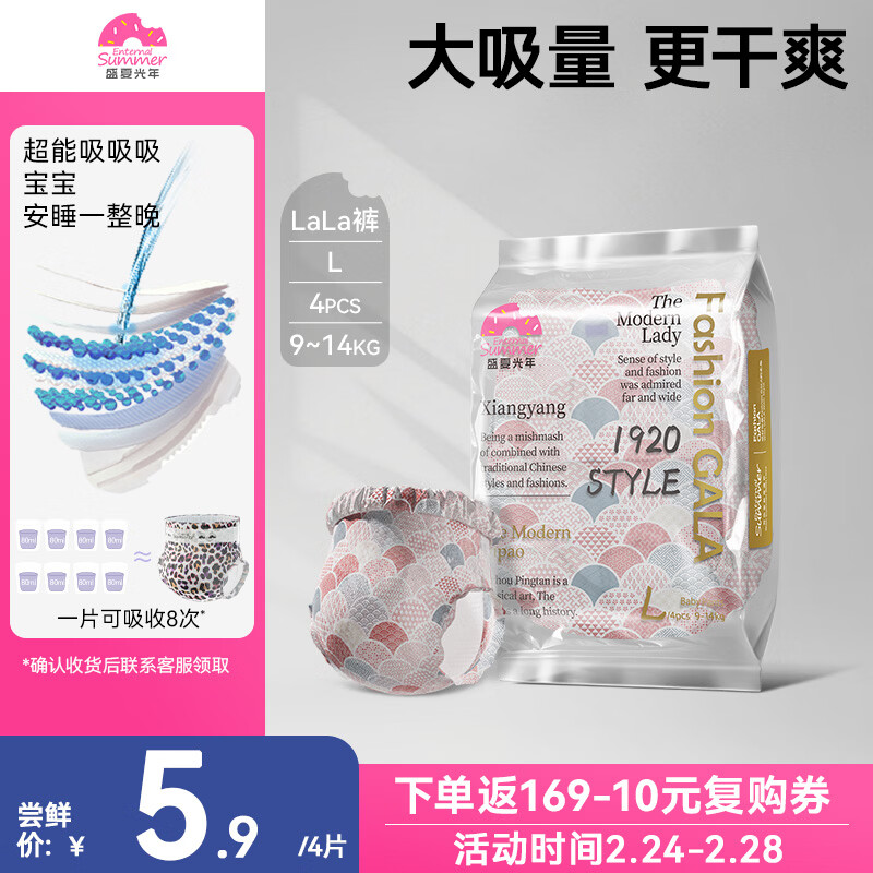 盛夏光年 Fashion Gala婴儿拉拉裤L码旅行装4片