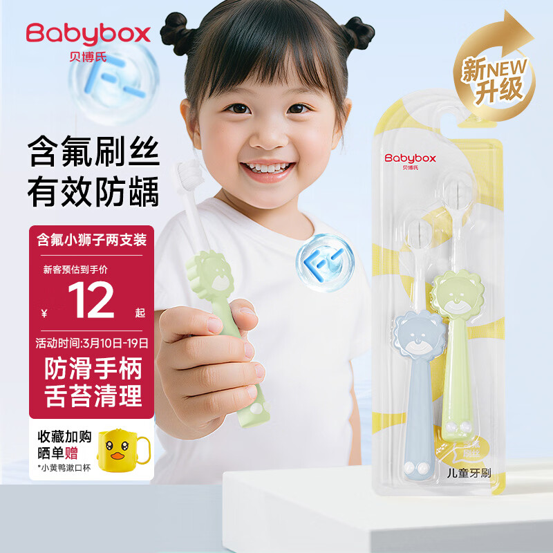 贝博氏儿童牙刷含氟刷丝细软刷毛2-6岁乳牙舌苔刷口腔清洁2支装