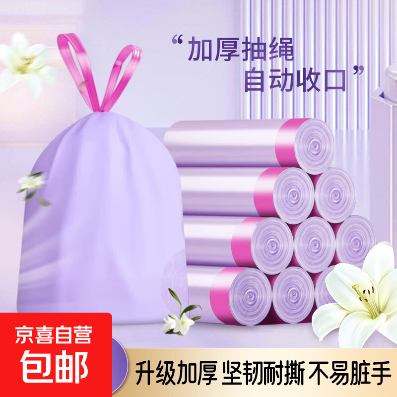 抽绳式垃圾袋家用加厚手提厨房宿舍用学生大号紫色塑料袋45*45cm 【霞光紫】-20只