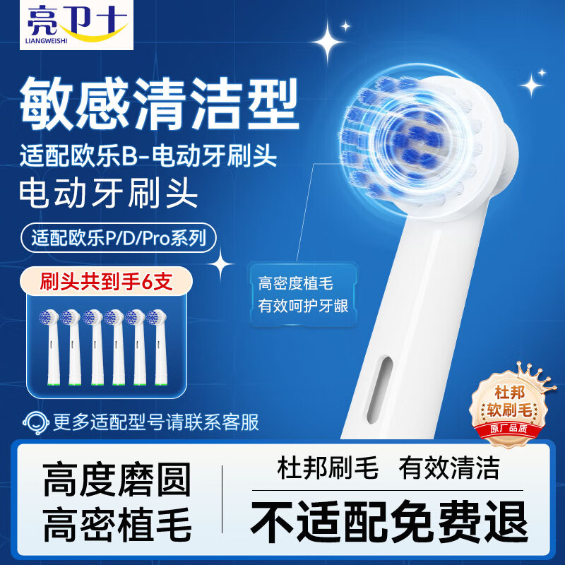 欧乐B(Oral-B)电动牙刷成人P4000深度清洁牙龈按摩3D声波旋转摆动P系列圆头送男友送女友情侣送礼七夕节礼物 适配牙刷头【柔和护理型】6支