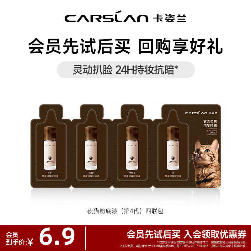 卡姿兰(Carslan)双猫粉底液遮瑕控油bb霜持久不易脱妆小奶猫夜猫油干皮粉底送女友 小夜猫粉底液(4.0升级版)四联包