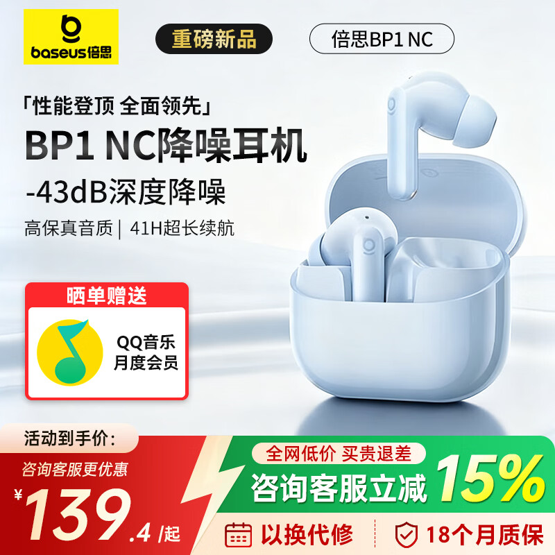 倍思(BASEUS)M2sPro入耳式蓝牙耳机-52dB超长续航通话MP1真无线金标认证新年礼物跑步主动降噪耳机适用苹果华为 【新品】BP1 NC -43dB降噪-星海蓝