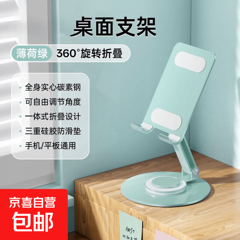 【包邮】手机支架桌面可折叠旋转金属懒人便携支架网课考研追剧直播支架适用苹果华为荣耀小米三星 【彩色全金属】加重加大-清新绿
