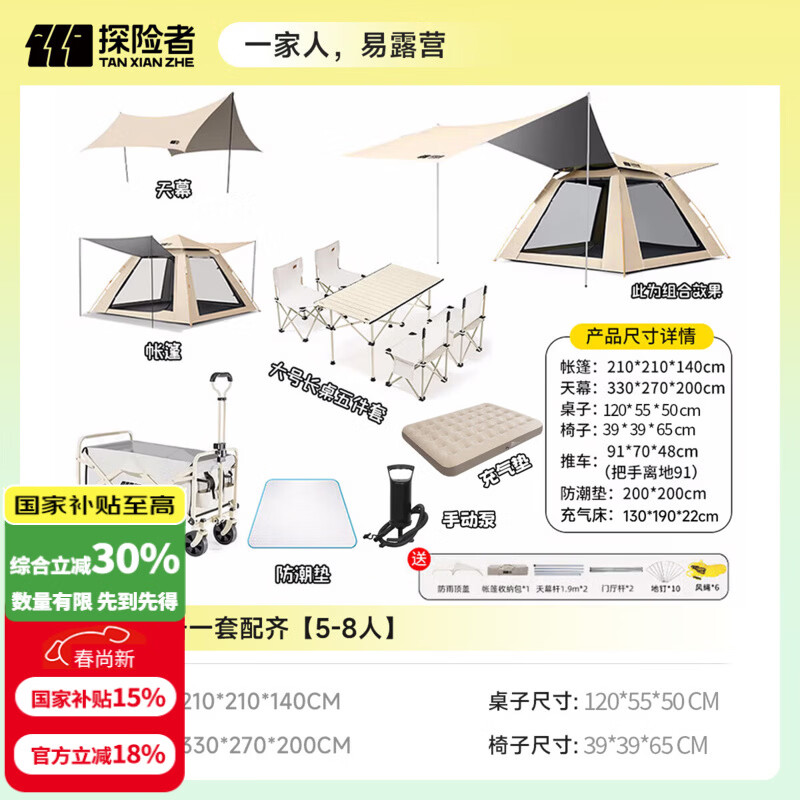 探险者(TAN XIAN ZHE)露营桌椅露营装备全套一体户外桌椅套装便携折叠桌子四椅子野餐桌 【120CM】露营装备一套配齐【3-5人】