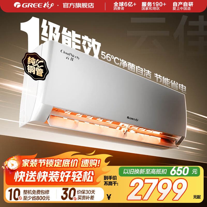 格力空调 1.5匹/大1匹 云佳Pro/云佳 新能效变频冷暖自清洁 纯铜管 壁挂式卧室空调挂机 家电补贴 云佳 新一级能效 1.5匹
