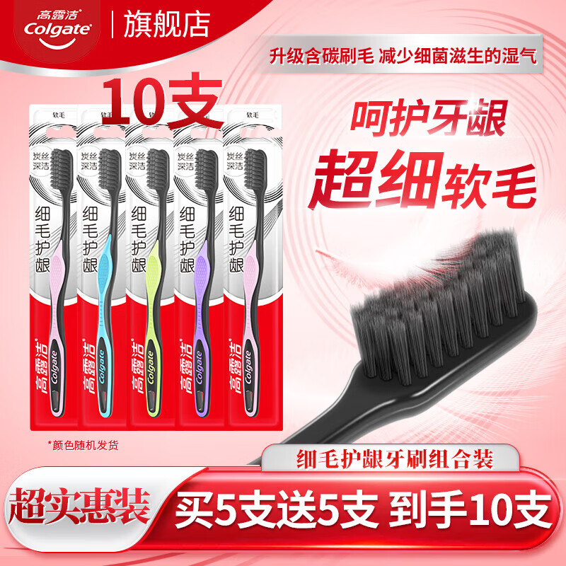 高露洁强推专业系列牙膏防蛀亮白美白清新口腔清洁护理多效套装 高露洁口腔清洁软毛牙刷5支(颜色随机)