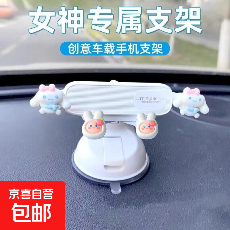 高档新款车载手机支架车内吸盘式中控台可伸缩旋转车用导航支撑架 卡通款-重力式支架【送小公仔6个】