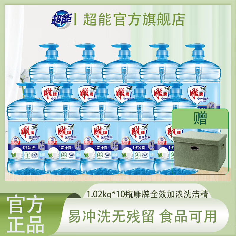 雕牌洗洁精家庭装家用大桶全效加浓强力洗涤剂厨房洗碗清洁剂实惠 【20.4斤】1.02kg*10瓶雕牌全效洗洁精+收纳盒