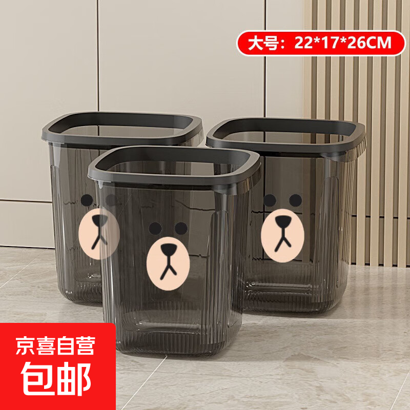 黑熊家用垃圾桶轻奢客厅厨房卧室卫生间厕所办公室压圈纸篓 特大号【24*23*28】