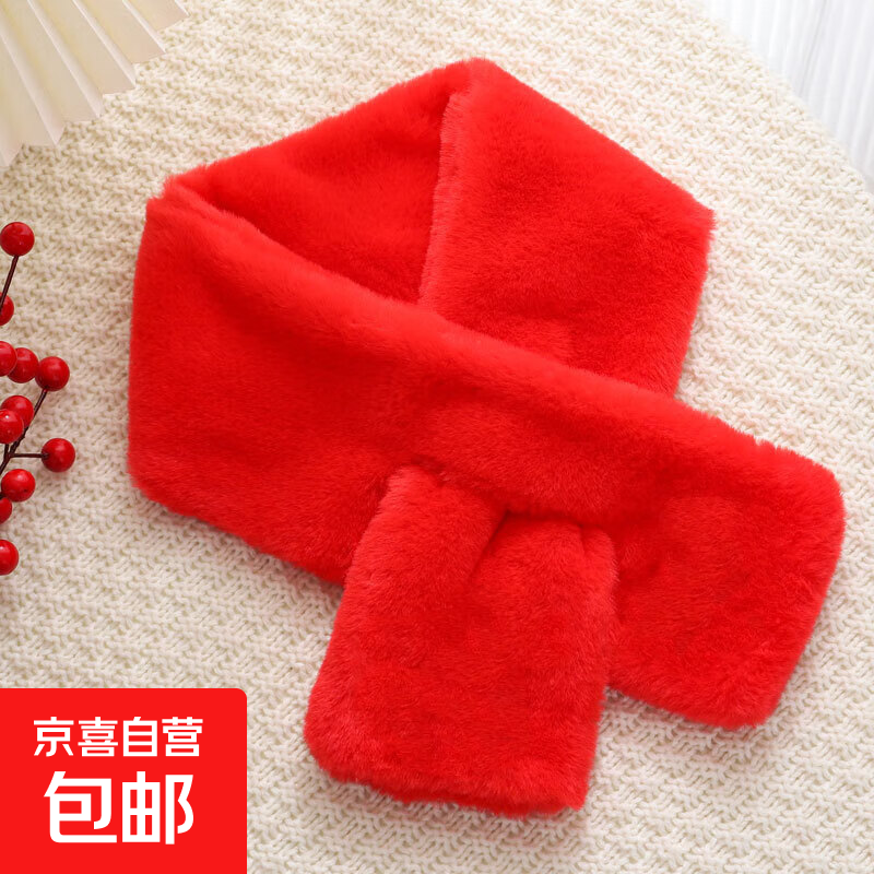 围巾女冬季百搭毛绒加厚围脖韩版纯色毛毛脖套男女仿獭兔毛围巾 红色围脖 约【83*13】cm
