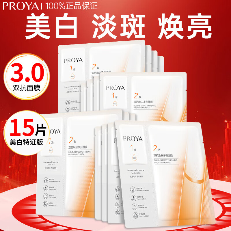 珀莱雅(PROYA)双抗美白面膜特证版补水保湿提拉紧致弹润透亮改善暗黄面膜送女友 15片