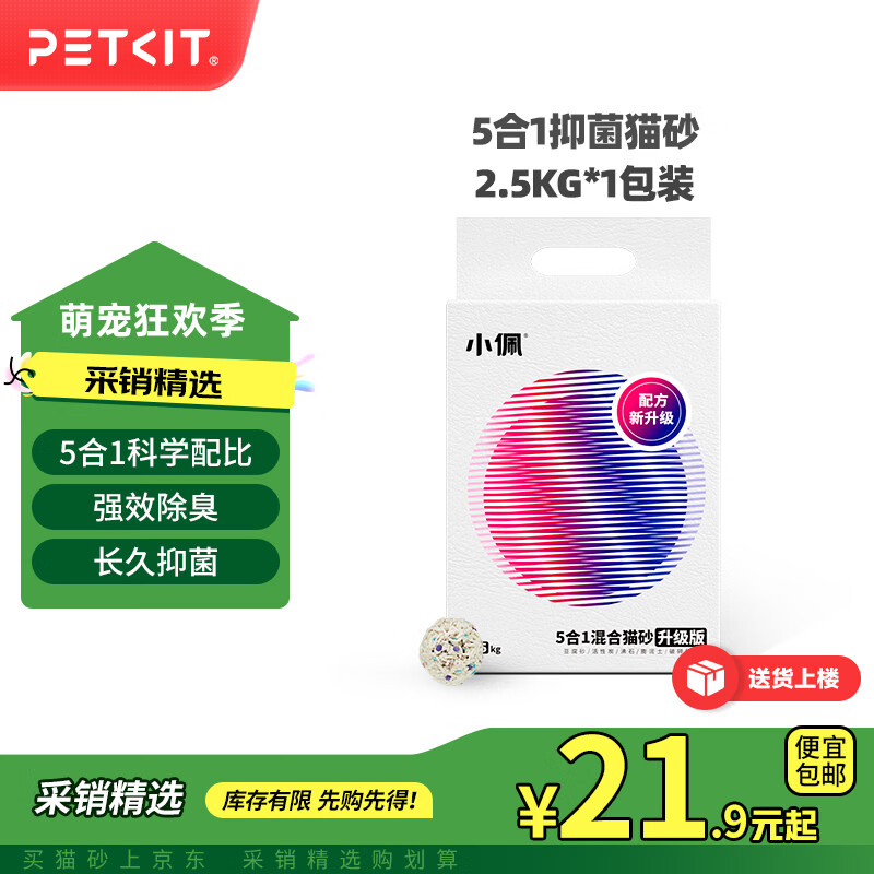 小佩五合一混合猫砂 活性炭豆腐混合 膨润土猫砂可冲厕所除臭 5合1升级砂 2.5kg 规格