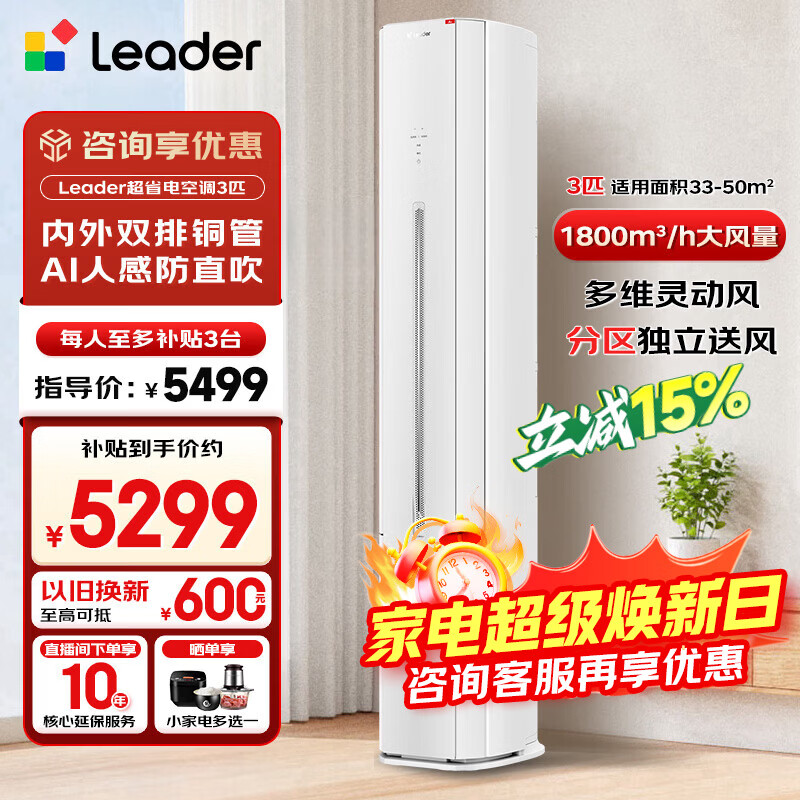 海尔空调出品大3匹2匹空调立式柜机一级能效变频冷暖家用大客厅超静音冷暖空调自清洁以旧换新补贴统帅 懒人神机 品质款 3匹 AI人感节能+人感防直吹