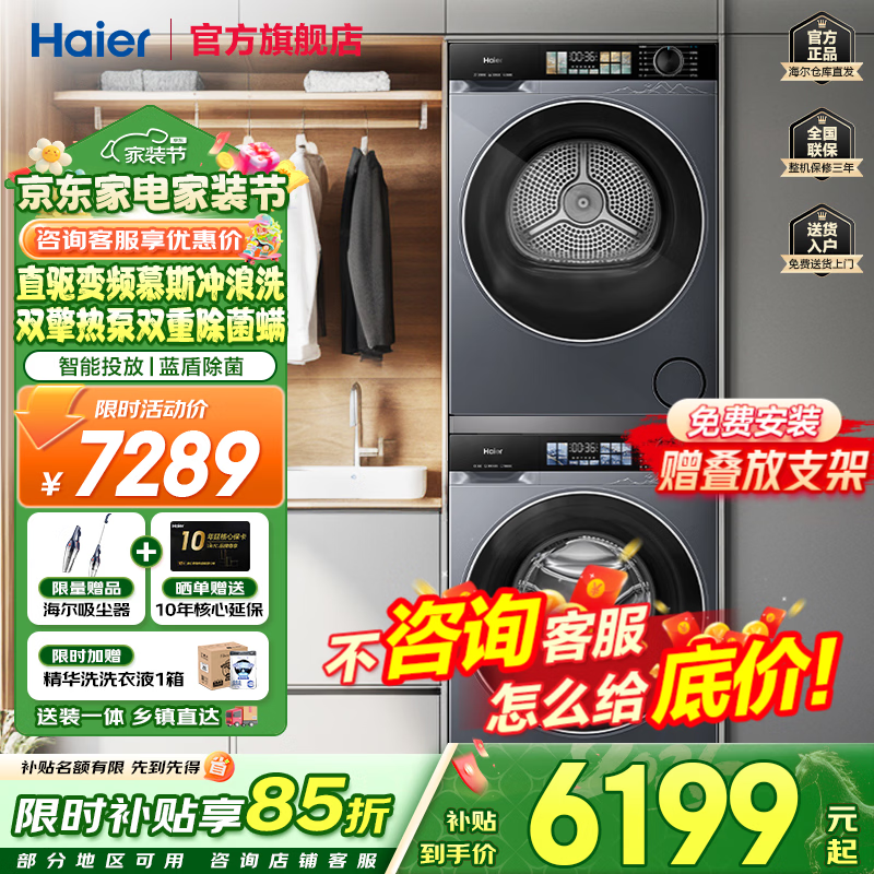 海尔云溪4.0洗烘套装77EW/37E/53E/67E/582/52D1洗衣机烘干机洗干套装10公斤/13公斤/12公斤 【超高性价】37E丨直驱慕斯冲浪洗+双擎热泵