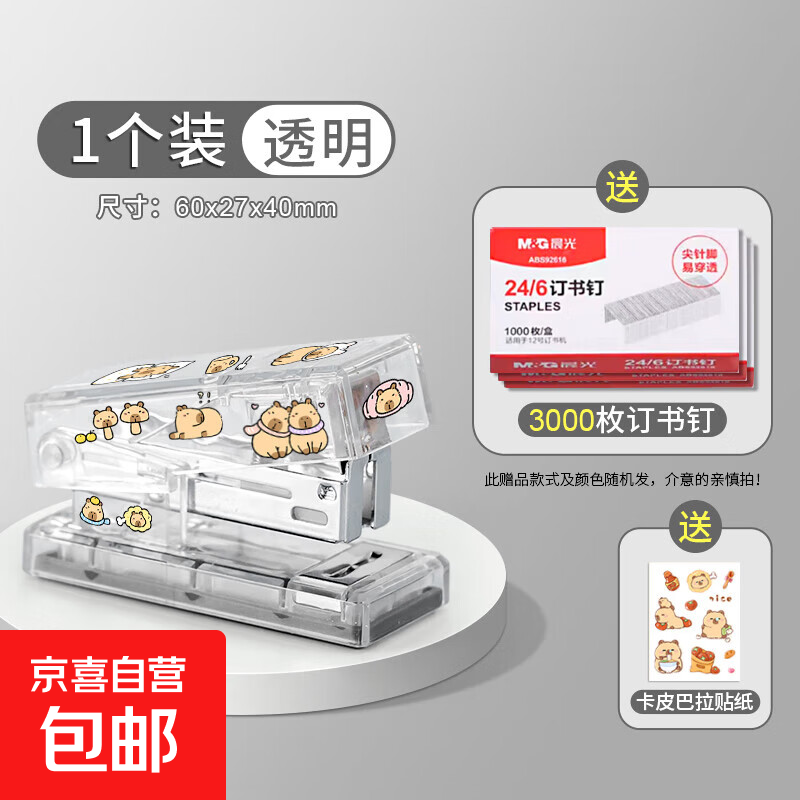 学生用卡通订书机桌面装订迷你小号可爱颜值订书器学习用品钉书机定书机钉书器家用书钉省力12号 【琉璃白】透明订书机+贴纸(送3000枚订书针)
