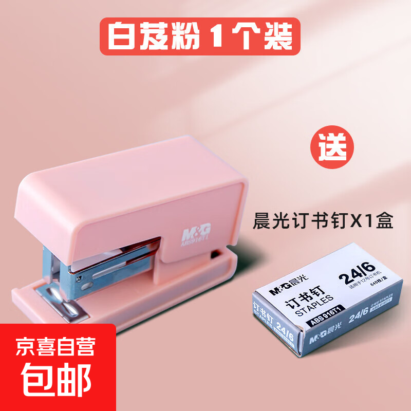 学生用卡通订书机桌面装订迷你小号可爱颜值订书器学习用品钉书机定书机钉书器家用书钉省力12号 莫兰迪【粉色】送1盒钉