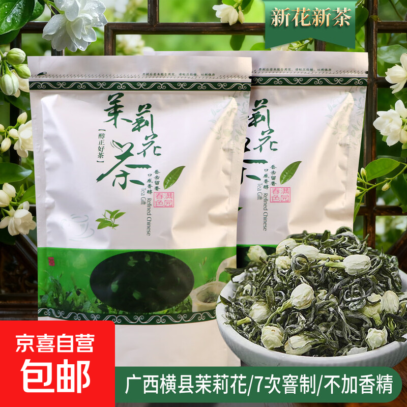广西横县茉莉花茶茉莉小白毫花香浓郁口粮茶叶送领导长辈 国色天香400g【两袋装】