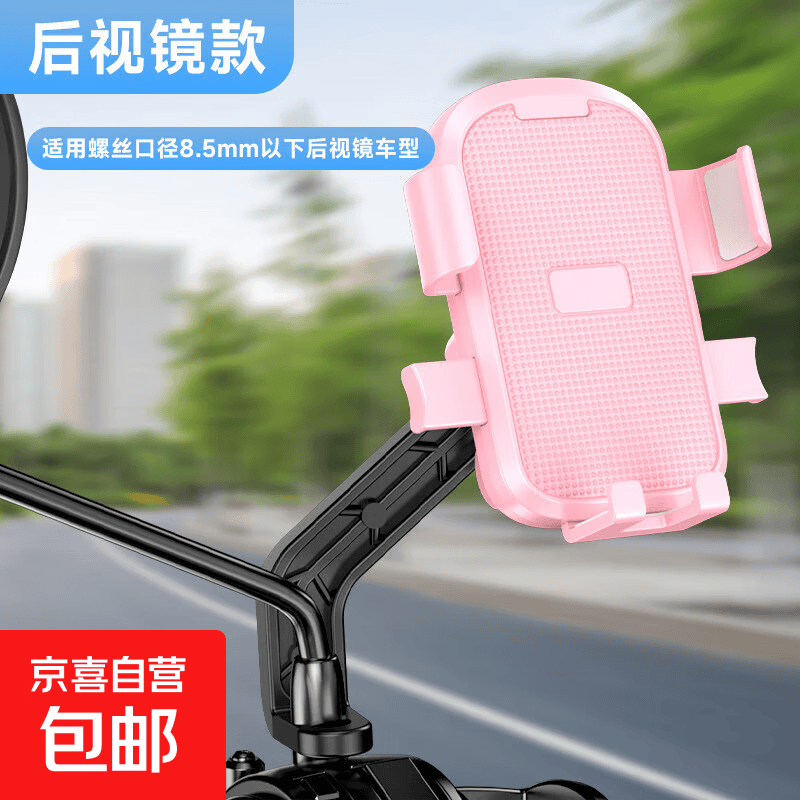 【京东包邮】电动车摩托车可旋转手机支架导航神器外卖骑手车载便携防震装备 粉色【新款升级稳固/401后视镜款】