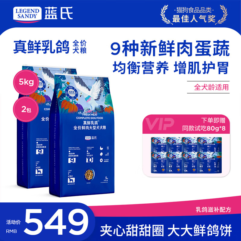 LEGENDSANDY蓝氏狗粮真鲜乳鸽中小型犬泰迪比熊生骨肉冻干鲜肉通用全价犬粮 真鲜乳鸽【大型犬】10kg|增肌健骨 全阶段 泰迪比熊柯基