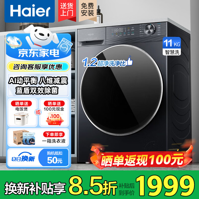 海尔(Haier)滚筒洗衣机10公斤全自动洗烘一体带烘干一级能效除螨菌超薄机身以旧换新补贴 海尔58E|蓝盾除菌 滚筒单洗 11kg 咨询客服更优惠