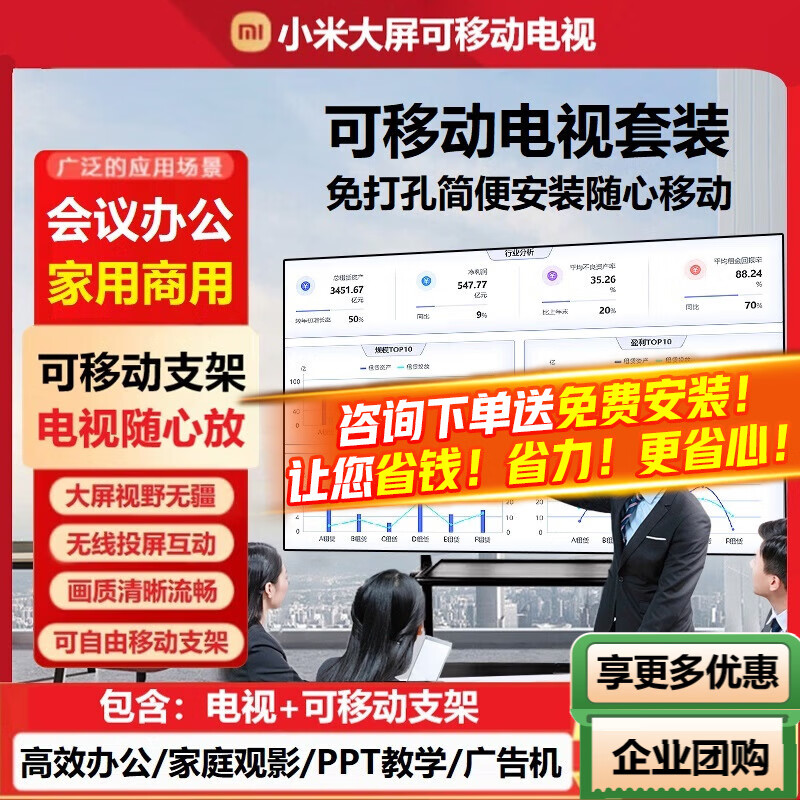 小米(MI)可移动电视闺蜜机直播大屏随心投屏广告机32/43/50/55/65/75/85英寸家用平板显示器落地支架一体机 85英寸 【移动电视丨仅支持横屏】电视+可移动支架