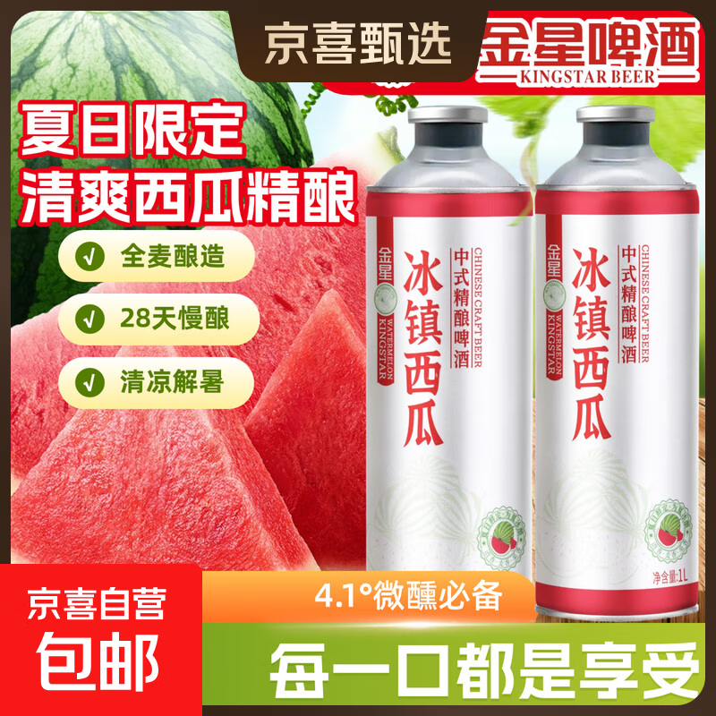 金星(KINGSTAR)冰镇西瓜冰糖葫芦柠檬海盐中式精酿啤酒果啤春节年货送礼 冰镇西瓜 1L 2罐 双瓶装