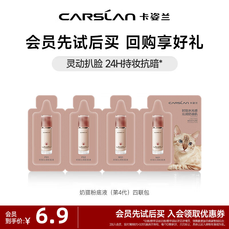 卡姿兰(Carslan)双猫粉底液遮瑕控油bb霜持久不易脱妆小奶猫夜猫油干皮粉底送女友 小奶猫粉底液(4.0升级版)四联包