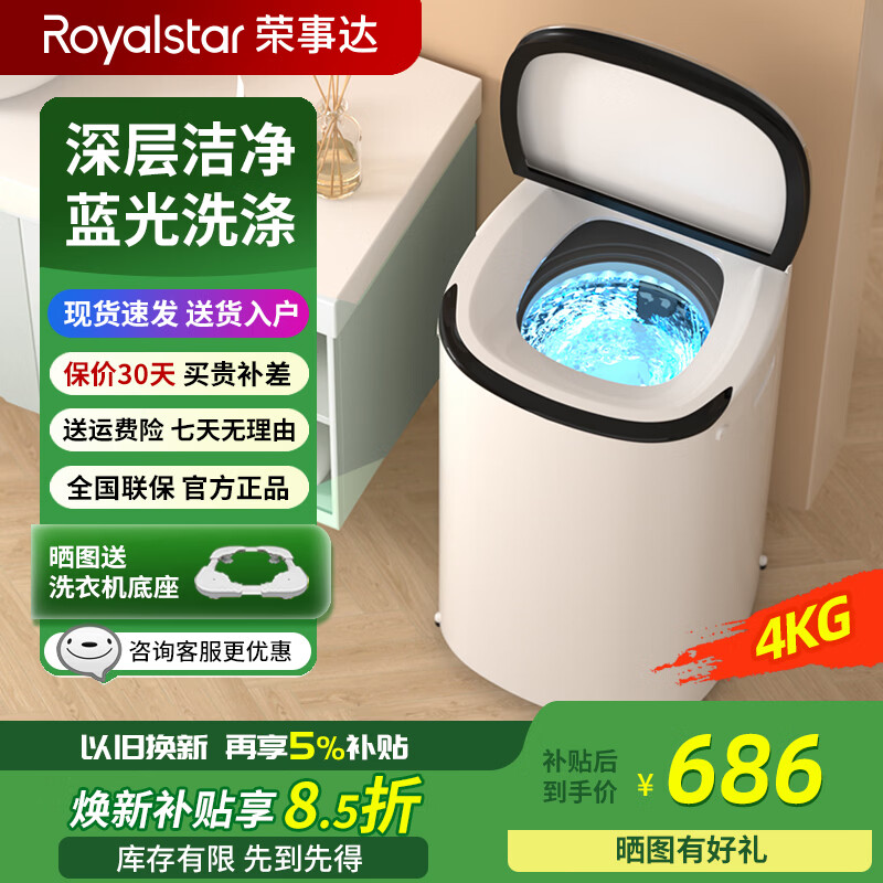 荣事达【高端系列】迷你高温煮洗4kg婴儿洗衣机全自动杀菌蓝光洗脱一体机家用儿童小型3.5公斤宝宝风干 4KG白【升级蓝光+洗脱一体】后触屏款 波轮