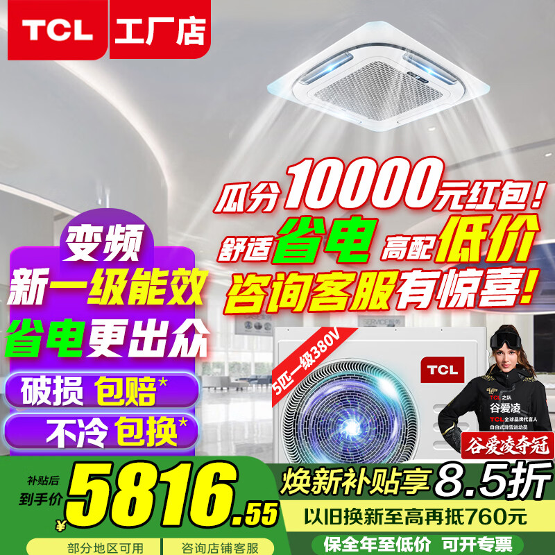 TCL吸顶空调 天花机 中央空调商用变频隐藏式吸顶式 天井机5匹嵌入式商铺办公室厂房立式柜式空调柜机 大5匹 冷暖-新一级能效380V【真省电款】