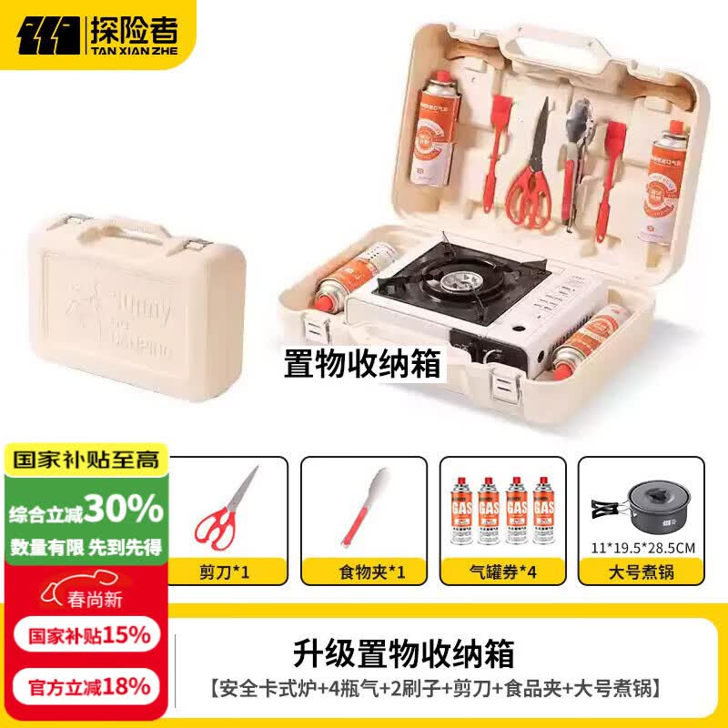 探险者卡式炉户外卡式炉具套装防爆卡磁炉全套带锅烤盘露营野餐烧烤卡斯 炉+全收纳箱+4气券(赠品)+煮锅