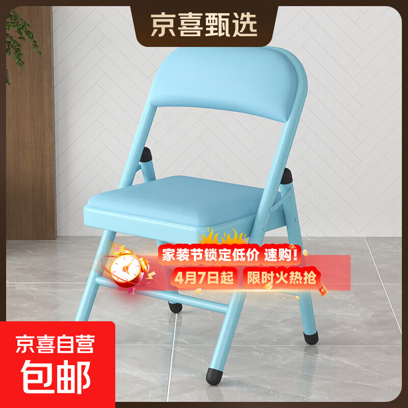 【京喜甄选】电脑椅折叠椅可折叠座椅工学椅凳子便携会议椅座椅 升级加固【蓝色PU】
