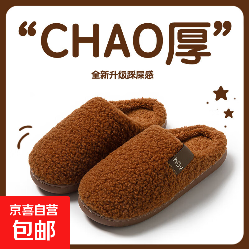 【洁丽雅同款】棉拖鞋冬室内居家防滑保暖月子毛绒棉拖鞋女毛拖 深咖 38-39 【适合37-38】