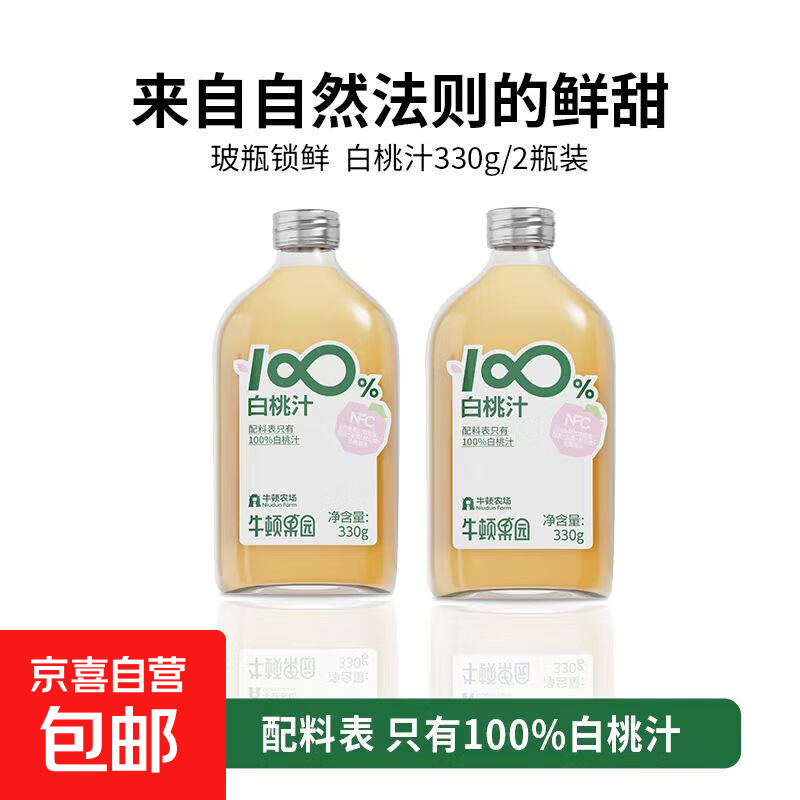 牛顿农场100%白桃汁 NFC果汁 0添加 玻璃瓶装 桃汁330g*2瓶