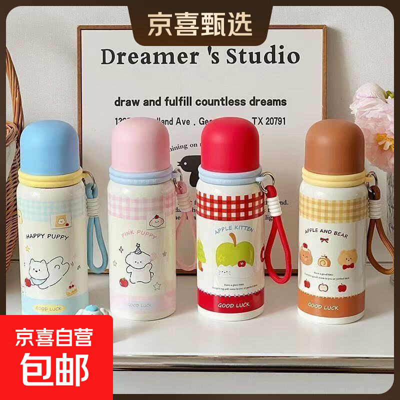可爱吸管保温杯不锈钢高颜值儿童女生水杯便携ins风学生喝水杯子 粉色