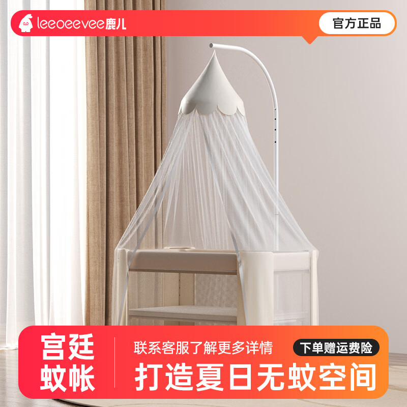 leeoeevee鹿儿婴儿床蚊帐全罩式通用带支架杆免打孔防蚊帐罩新生宝宝公主风 宫廷蚊帐(适用婴儿床/床中床)