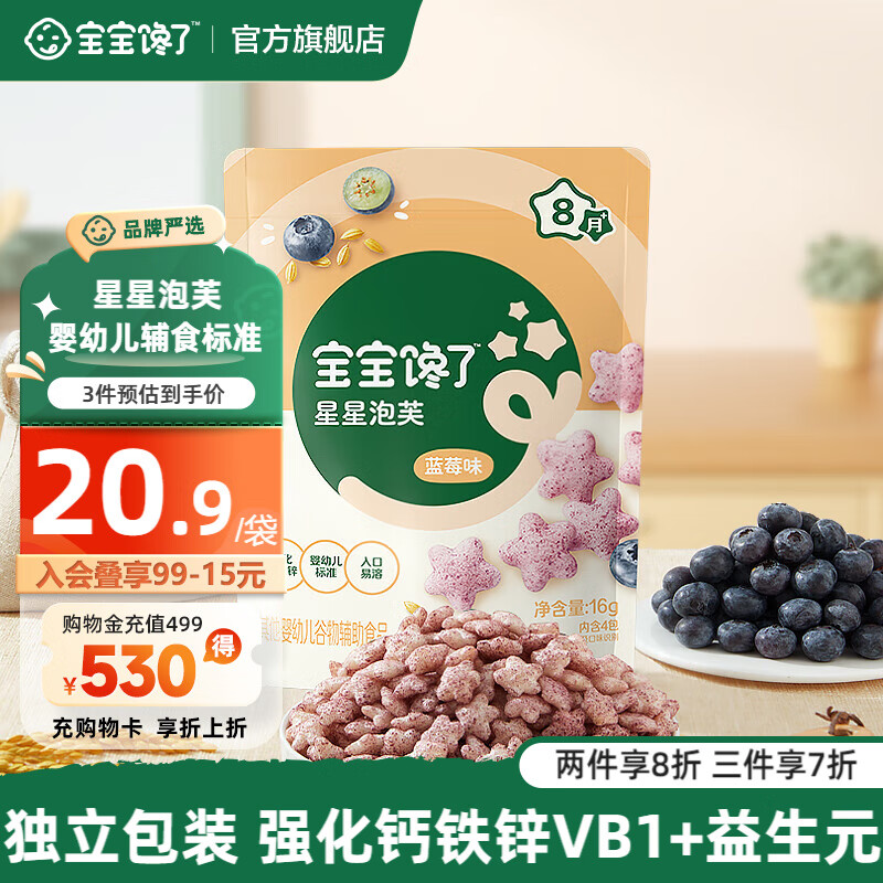 宝宝馋了手指泡芙宝宝婴幼儿零食辅食无添加盐6个月以上享婴儿宝宝食谱 8月+ 婴幼儿星星泡芙(蓝莓) 16g/袋