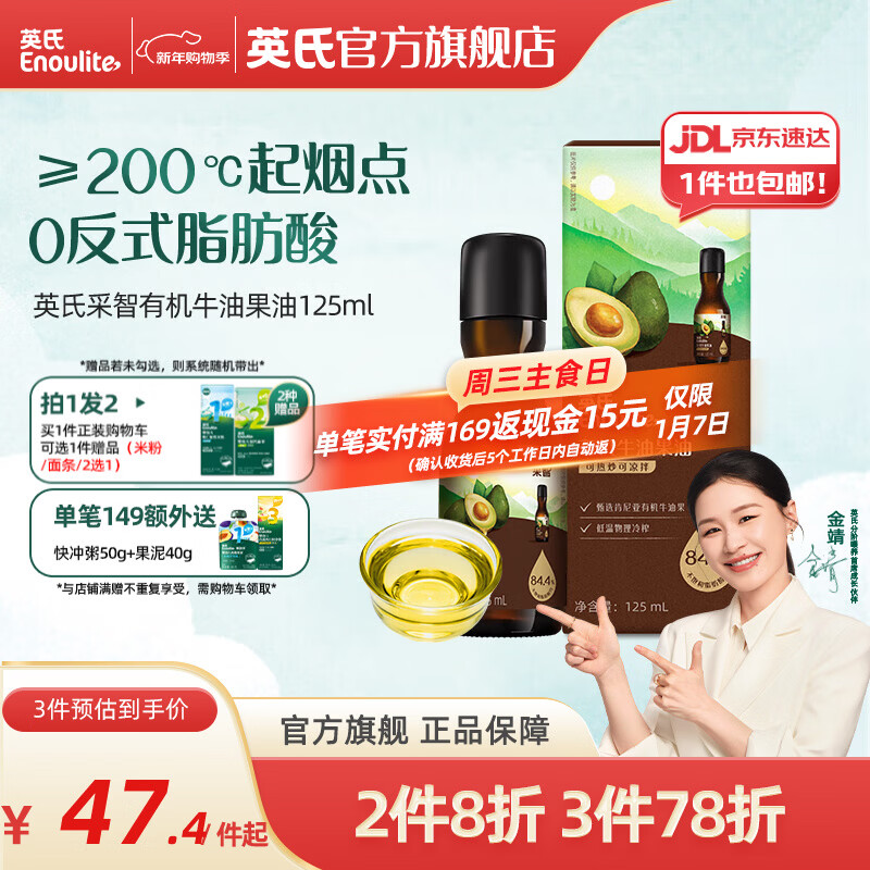 英氏采智有机核桃牛油果亚麻籽油儿童热炒凉拌食用油组合油 【热炒刚刚好】牛油果油125ml