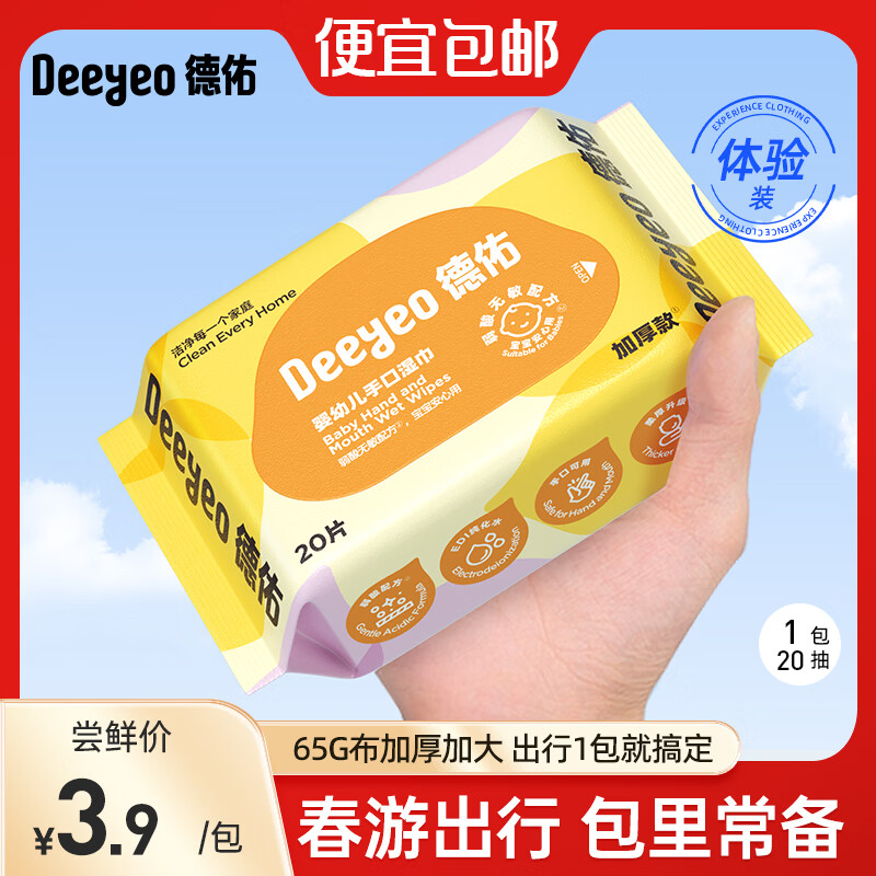 德佑湿巾婴儿湿巾手口湿纸巾生儿湿巾宝宝手口屁屁专用儿童湿巾 【出行首选】 20抽 1包
