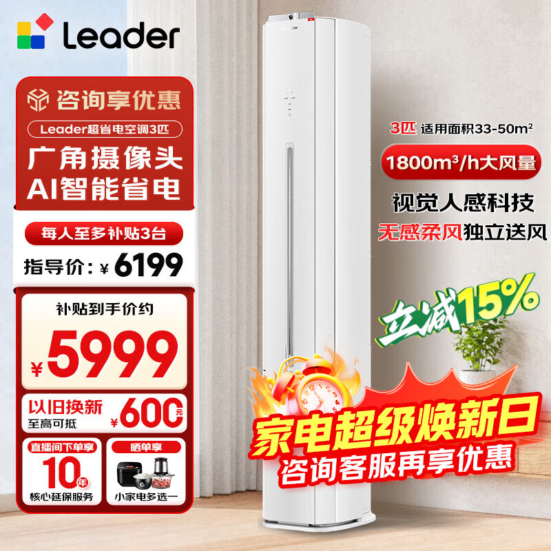 海尔空调出品大3匹2匹空调立式柜机一级能效变频冷暖家用大客厅超静音冷暖空调自清洁以旧换新补贴统帅 懒人神机 品质款 3匹 视觉人感科技+AI人感节能