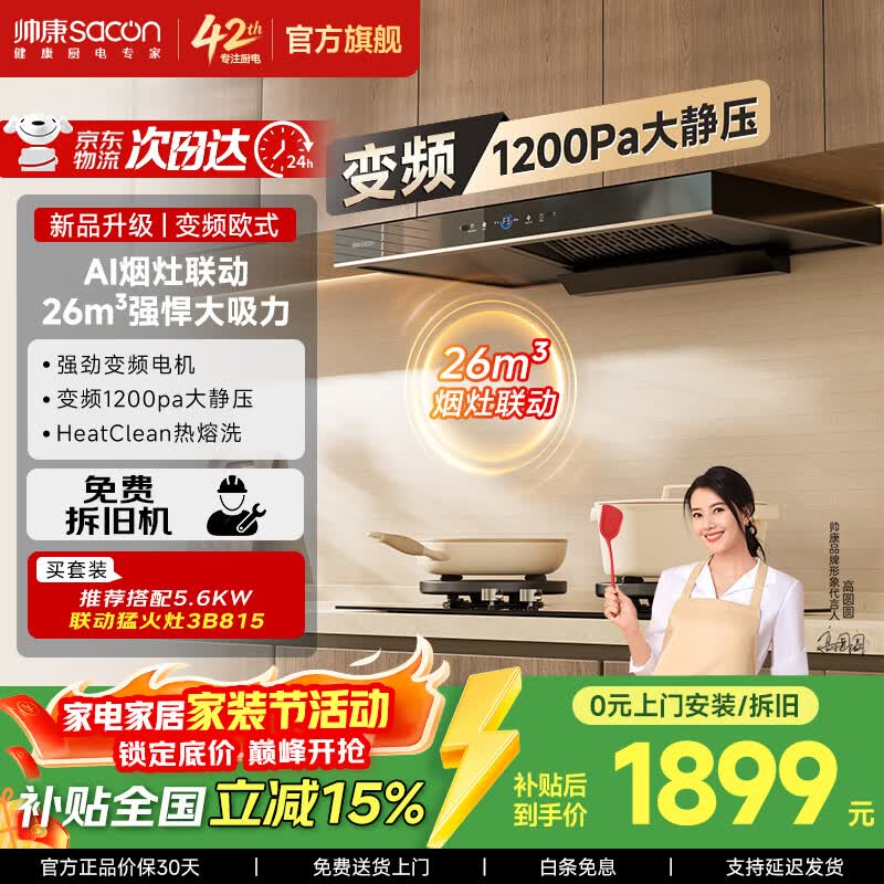 帅康(Sacon)【净界Pro】欧式顶吸式抽油烟机T810Pro T8233Pro 【特价爆款】25m³大吸力 以旧换新挥手智控 【净界Max】26m³变频1200Pa(T811)