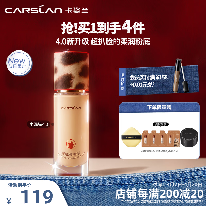 卡姿兰(Carslan)双猫粉底液遮瑕控油bb霜持久不易脱妆不卡粉奶夜混猫生日礼物女友 【25年双旦限定】混猫粉底液P01 4.0