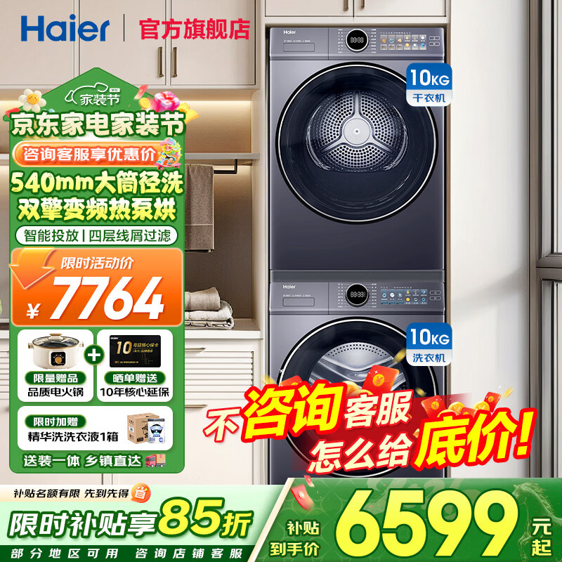 海尔云溪4.0洗烘套装77EW/37E/53E/67E/582/52D1洗衣机烘干机洗干套装10公斤/13公斤/12公斤 【云溪4.0】丨10公斤67E精华洗+双擎热泵