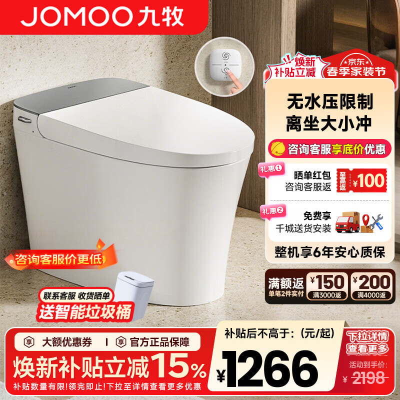 九牧(JOMOO)轻智能马桶一体机全自动冲水恒温座圈虹吸式一级水效坐便器 【26年新品离座大小冲+静音冲】SQ6366 400mm (390以上选择)