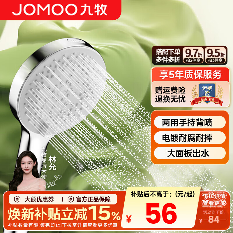 九牧(JOMOO)花洒喷头全套家用增压洗澡淋浴莲蓬头热水器手持淋雨花洒软管套装 四档带背喷增压花洒S263015